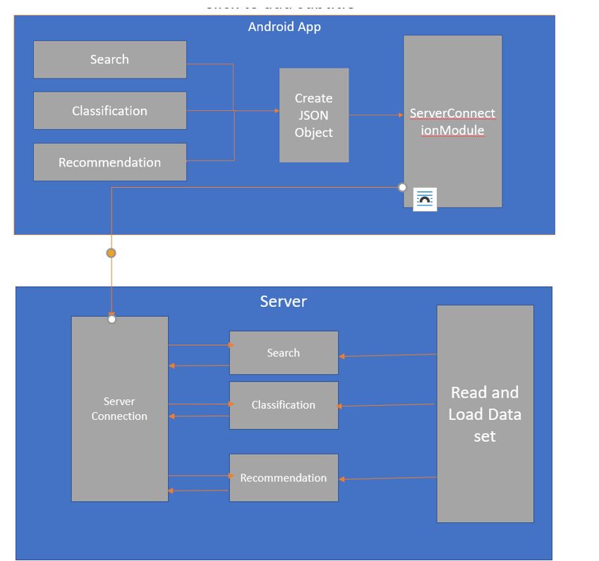 I have developed android application to communicate to server and show result of search, classification and recommendation to user.